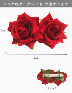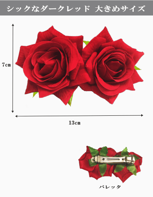 バレッタ 大きめ ビックローズ コサージュ ヘッドアクセ 髪飾り 花 フラワー 薔薇 バラ ローズ ヘアアクセサリー フローレス ヘアクリップ ダンス フラメンコ 浴衣 結婚式 パーティ 着物 ヒップホップ 社交ダンス シック ブローチ シージョ留め ミカドレス cr268-r zas