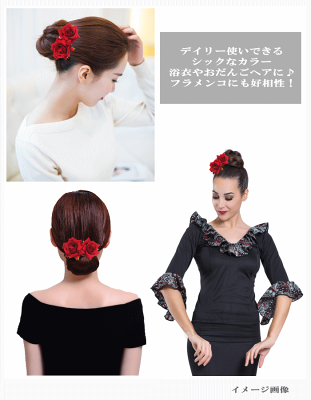 シンプルコーデのアクセントや、フラメンコ衣装、ダンス衣装のワンポイントに! アップヘア、おだんごヘア、ハーフアップ、つけやすい大きさです。